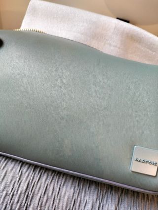 Bolso color gris oscuro verdoso Tiene asa corta y asa larga Cremallera interior Cremallera exterior y bolsillo con cierre de imán Medidas 19x13x11 cm Se entrega en mano también en Granada