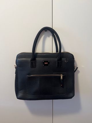 Maletín de ordenador de 14” sin uso. Tiene varios bolsillos interiores y uno exterior. También cremallera exterior para poder sujetarlo con una maleta.