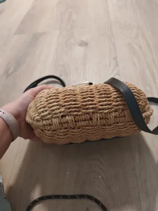 Bolso de rafia con detalles en piel sintética. - Cierre de solapa con broche. - Asa bandolera ajustable. - Diseño tejido. En perfecto estado bolso muy coqueto hago envíos