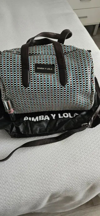 Bolso de mano y hombro Bimba y Lola con acabado en piel. - Diseño tejido en tonos marrón chocolate y multicolor (tonos azules, blanco y marrón) - Asas cortas, asa bandolera, y bajo bolso piel marrón chocolate - Incluye bolsa guardapolvo con logo de la marca. Posibilidad de recogida en Metro Barajas