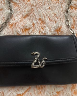 Elegante bolso de mano Zadig & Voltaire. - Diseño en piel negra. - Detalle de serpiente plateada. - Cadena metálica plateada para llevar al hombro o cruzado. Precio negociable