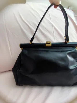 Elegante bolso de estilo retro. - Diseño clásico. - Cierre metálico dorado. - Asa de mano. - Material: Piel.