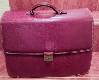 Maleta de piel sintética de la marca DAVILETTO, comprada en El Corte Inglés. Es de color marrón-púrpura y tiene un diseño clásico y elegante. - Asa de mano resistente. - Cierre de seguridad metálico. - Piel de excelente calidad. - Con 3 compartimentos y cierre clic sin cerradura,. Usada pero en buen estado, mide 28cm de alto x 40cm de ancho x 16cm de fondo, urge venta por jubilación y pre mudanza, precio negociable.