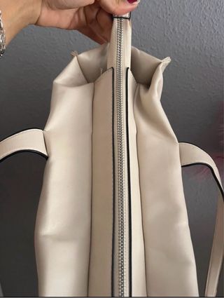 Bolso de gran tamaño en color beige. - Diseño espacioso. - Asas cómodas para llevar al hombro. Para la universidad o el trabajo, tiene cremallera y forro por dentro, estilo piel. Talla M