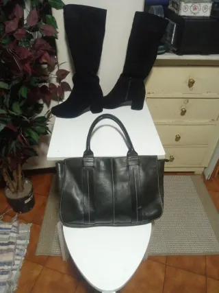 Botas altas negras talla 40 y bolso negro