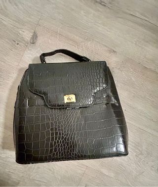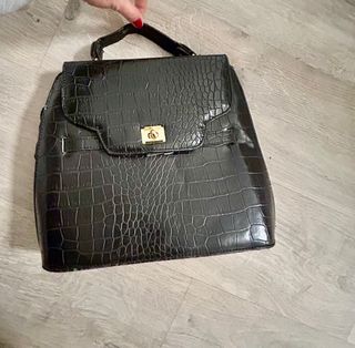 Bolso negro piel efecto cocodrilo