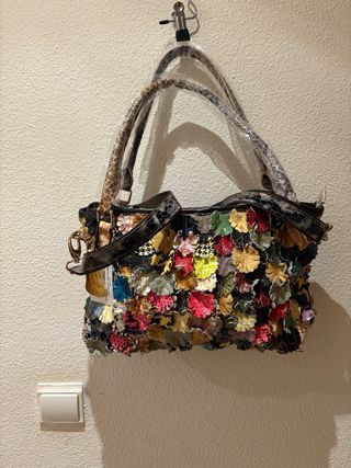 Bolso de piel de alta calidad con un diseño único y llamativo. - Acabado multicolor. - Material: Piel. herrajes dorados. Buena combinación por su tonalidad amplio seis departamentos dos de ellos con cremallera nuevos sin estrenar incluye bolsa de protección