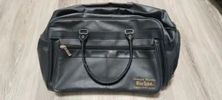 Elegante bolso de viaje con el distintivo logo de Johnnie Walker. - Color azul marino. - Detalles dorados. - Material tipo piel.
