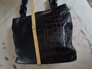 Elegante bolso de mano con un diseño texturizado que imita la piel. - Cierre principal con cremallera. - Bolsillo frontal con solapa y hebilla. - Asas cómodas para llevar en la mano o el antebrazo. - Acabado con costuras a contraste. Está en perfectas condiciones, lo único es que la cremallera de uno de los bolsillos interiores está rota. Las fotos forman parte de la descripción.