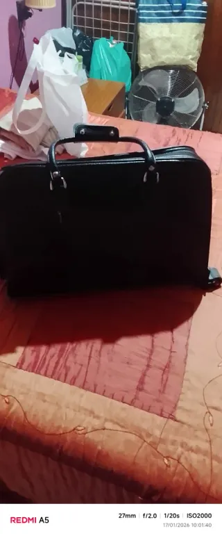 Elegante maleta de piel, perfecta para viajes o uso diario. Su diseño clásico y material de calidad la hacen un accesorio versátil. - Material: Piel. - Color: Negro. - Cierre de cremallera.