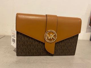 Bolso original de Michael Kors, color marron tostado, tamaño mediano. la piel está arrugada de estar guardado pero está en buen estado. Solo tiene descolorido el cierre de clip de dentro , no se ve nada (adjunto foto).