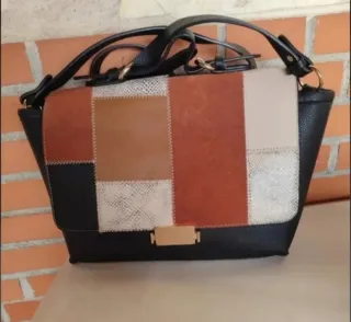 Bolso en piel sintética, nuevo, detalles étnicos.