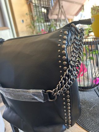 Bolso Negro Piel Sintética Tachuelas Cadena