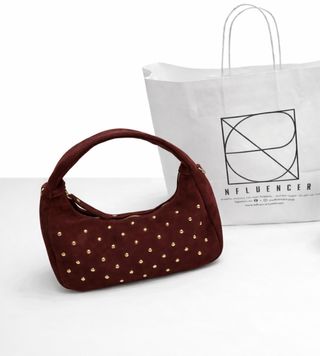 Bolso de piel en color burdeos, con un diseño adornado con tachuelas doradas. - Material: Piel. - Color: Burdeos - Detalle: Tachuelas doradas.