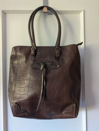Bolso de piel con un diseño texturizado que le da un toque elegante. - Material: Piel. - Color: Marrón. - Textura: Efecto cocodrilo.