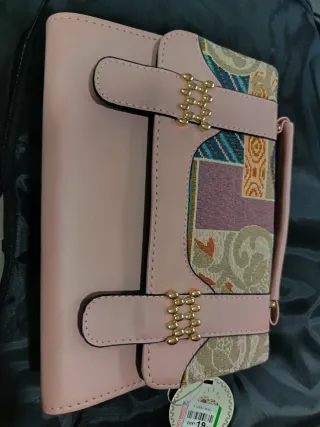 Elegante bolso de mano. Muy bien espacio. - Colores: tonos rosas y multicolor. - Cierre con hebillas doradas. - Asa y correa larga incluida - Acabado en piel sintética Y bordado. Preguntar sin compromiso!