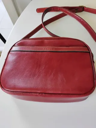 Bolso de hombro de color rojo marca Acacia con un diseño clásico y elegante tiene un poco de desgaste pero todavía tiene vida útil como se ve en las fotos - Material: Piel sintética. - Correa ajustable. - Cierre de cremallera Mide: 23 cm de largo 17 cm de alto 5 cm de fondo Y regalo un monedero de las fotos a elegir Por 3€