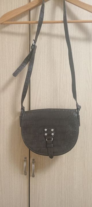 Precioso bolso bandolera pequeño de Stradivarius. - Asa larga de cadena metálica. - Diseño elegante y sofisticado. - Material con textura de piel de cocodrilo.