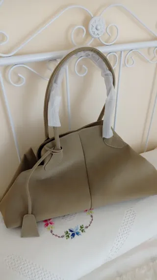Bolso dayaday “Real Leather” mujer Igual que nuevo, muy elegante. Comprado en El Corte Inglés. Es bastante amplio. Con la correa para llevarlo al hombro. Se puede ajustar con las correas en la parte superior. Mide 35 cm. de altura y de diámetro 25 cm. Exterior: 100% piel de cabra. Interior: 100% algodón. Accesorios: piel de vaca. Made in India. En la parte interior tiene varios compartimentos, uno con cremallera. T446