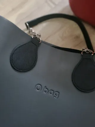 Bolso de la marca O bag en color negro. Diseño moderno y versátil. - Asa con cadena y detalles en piel. - Logo de la marca grabado. - se incluye otro bolso rojo