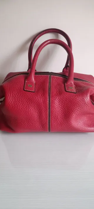 Elegante bolso de mano de piel en un vibrante color rojo y detalle en marrón chocolate - Diseño clásico y atemporal. - Asas cómodas para llevar en la mano o en el antebrazo. - Cierre de cremallera. - Detalle de costuras marcadas. - Incluye funda guardapolvo. Se uso una vez está perfecto