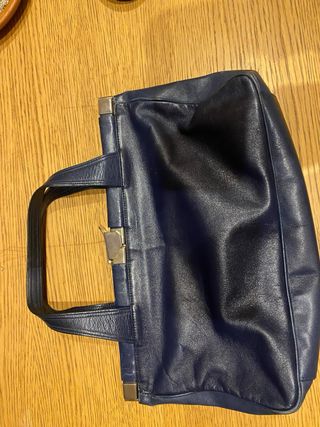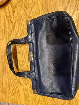Elegante bolso de piel en tono azul marino, con un diseño vintage. - Cierre metálico. - Asas de piel. - Acabado brillante.