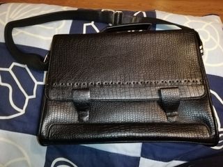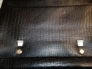Cartera maletín en simil piel de reptil. Medidas 37x28x10 cm. En perfecto estado. Con asa de mano, correa de hombro, doble cierre de pestillos y con hebillas de corchetes magnéticos. Múltiples compartimentos interiores y trasero.