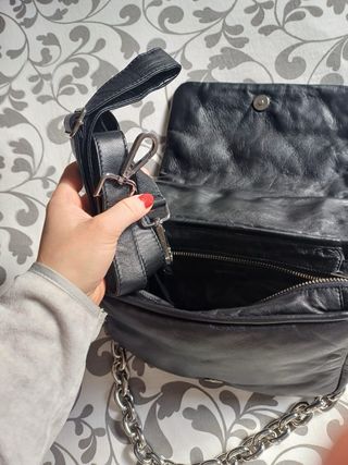 Bolso bandolera de piel con un diseño elegante. - Material: Piel. - Color: Negro. - Cierre con cremallera. - DOS Correas ajustables.