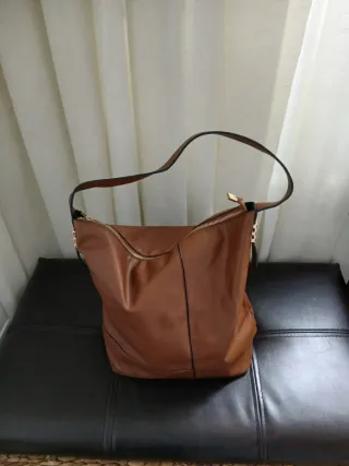 Bolso de piel marrón, usado una vez