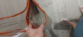 Bolso de hombro marrón y naranja