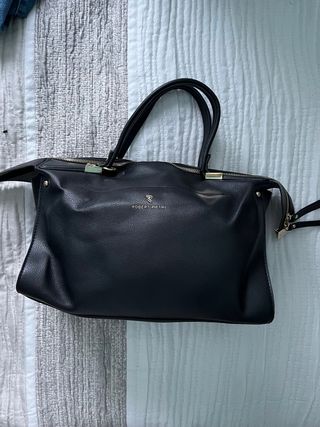 Elegante bolso de piel con un bonito acabado. - Diseño estructurado. - Asas cómodas para llevar en mano o antebrazo. - Bolsillos exteriores laterales. Unicamente tiene algun arañazo en los botones dorados del culo del bolso pero nada llamativo, ademas que no se ven. Se muestran fotos para su comprobacion.