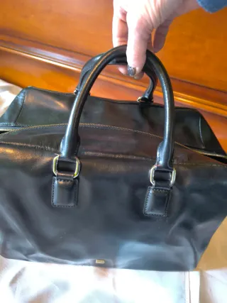 Bolso negro de piel de Purificación García(.AUTENTICO ) Está impecable . No tiene marcas de gasto. Grak capacidad ..Como nuevo ! Interior impecable!! Como se ve en las fotos . Y cremallera CORRECTA Medidas en foto .