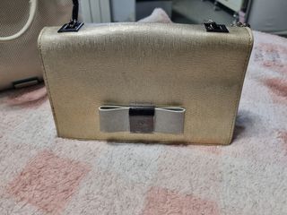 bolso dorado con desgastes en cadena y piel