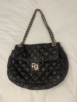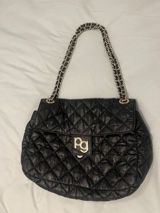 Bolso de Purificación García en color negro, con un diseño acolchado y suave. - Asa de cadena metálica. - Cierre de solapa. - Logo metálico de la marca en la parte frontal.