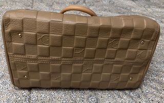 Elegante bolso de piel en tono marrón oscuro. Presenta un diseño con el logo de la marca grabado. - Material: Piel. - Color: Marrón oscuro. - Cierre de cremallera.