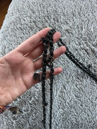 Bolso negro con detalles dorados. Asas de mano y hombro. Entrega en mano en Santiago o Pontevedra.