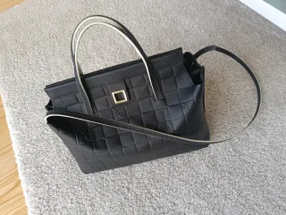 Elegante bolso de piel con un diseño texturizado a cuadros. - Asa de mano y correa para hombro. - Detalle metálico dorado en la parte frontal. - Interior espacioso. -Cierre con imán. -Compartimento interior con cremallera. -Asa de colgar al.hombro. También puede ser de mano. Casi sin uso. En perfecto estado. Se entrega con bolsa de tela de la marca.