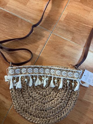 Bolso Zara Piel y Rafia