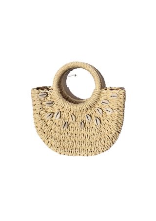 Bolso de mano rafia Uterqüe conchas y pedrería