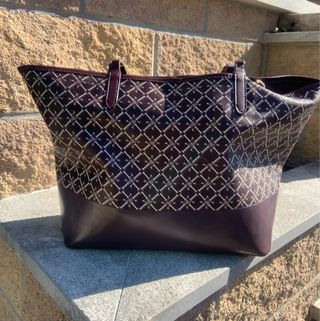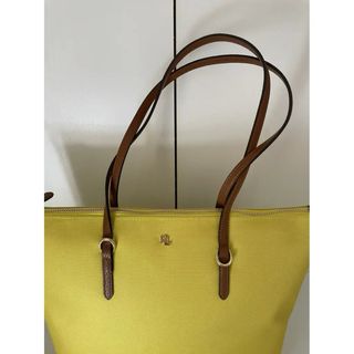 Elegante bolso tote de Ralph Lauren con un diseño distintivo. - Patrón monograma RL. - Base y detalles en piel. - Asas de mano.