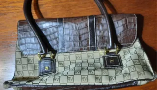 Elegante bolso de mano con un diseño distintivo. - Combinación de texturas y el logo RV repetido. - Detalles en piel con acabado de cocodrilo. - Asas cómodas para llevar en la mano.