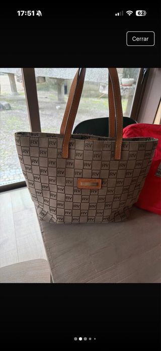 Bolso de mano con un diseño clásico y elegante. - Estampado de iniciales RV. - Asas de cuero. - Placa con logo en la parte frontal.