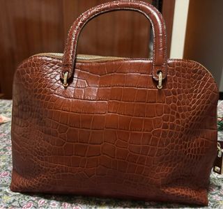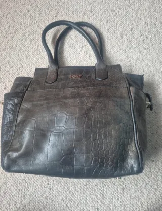 Bolso de piel con un diseño texturizado. - Acabado imitación piel de cocodrilo. - Dos asas para llevar al hombro o en la mano. - Compartimentos exteriores.
