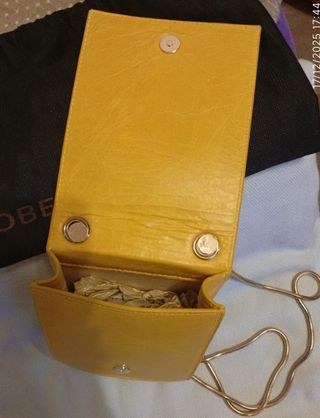 Bolso bandolera de la marca Roberto Verino. - Color amarillo. - Cierre de botón a presión. - Cadena metálica para llevar al hombro.