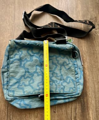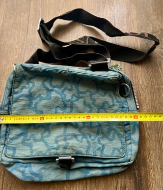 Bolso de la marca Tous con un diseño estampado. - Color azul y gris. - Correa ajustable.
