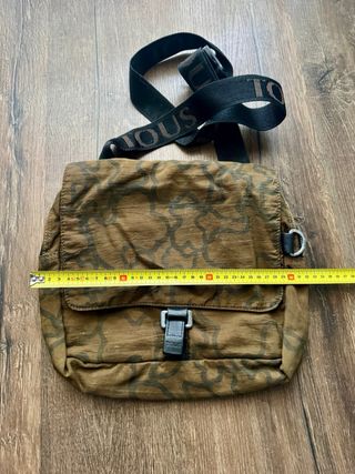 Bolso Tous original en color verde militar. Un accesorio elegante y práctico. - Diseño con el logo de Tous en relieve. - Cierre de solapa. - Correa ajustable.