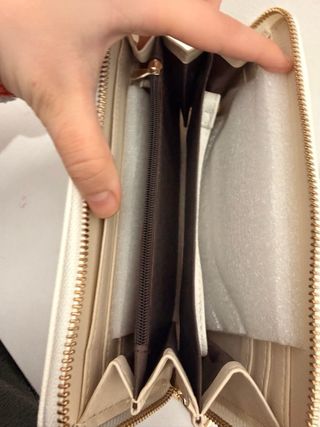 Vendo bolso de la marca Tous en color blanco. Presenta algunas manchas en el interior que muestran su uso. Además de que el bolso estuvo guardado. - Asa de mano. - Cierre de cremallera. - Bolsillo exterior con solapa y broche decorativo. - Detalle de tachuelas.