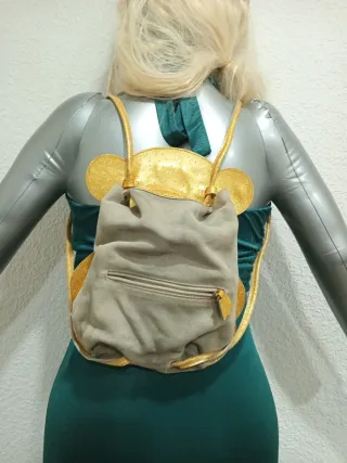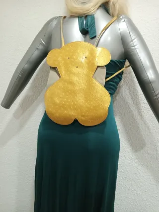 Mochila con diseño de oso en color dorado. -NO HAGO ENVÍOS NO ACEPTO BIZUM NI PAGOS POR WALLAPOP SOLO EFECTIVO ENTREGA EN PERSONA GRACIAS - Acabado brillante. - Detalle de perforaciones. - Correas ajustables.