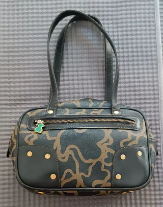 Bolso de la marca Tous con un diseño estampado. - Color principal verde con estampado en negro. - Correa ajustable. - Cierre de hebilla.