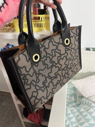 Bolso de la marca Tous con asas. - Diseño con estampado. - Cierre de cremallera. - Detalle de apliques dorados.